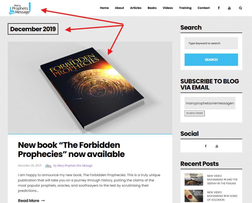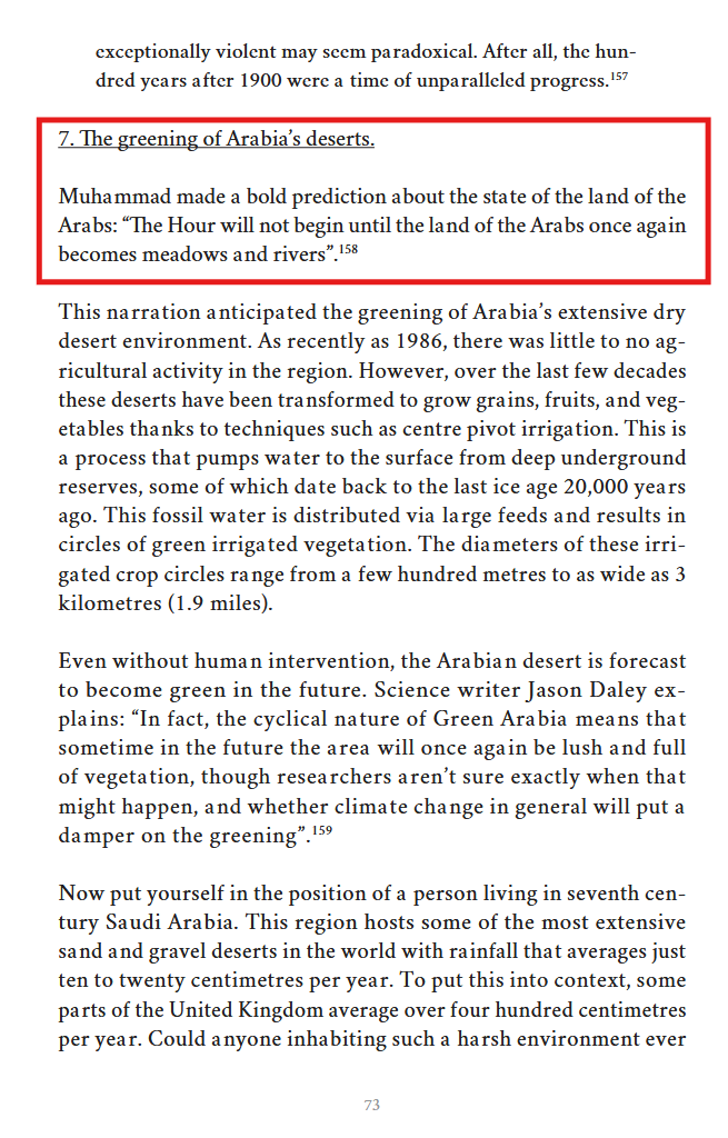 - December 29, 2019: IERA officially announces ‘Forbidden Prophecies‘ on the Many Prophets One Message website. The book uses the Arabia hadith as proof of Muhammad’s divine knowledge, claiming the Arabic word means ‘return‘ so Muhammad knew Arabia was green in ancient times. (source)